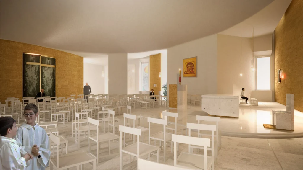In quest’ottica la proposta di un complesso parrocchiale che non sia svettante monumento a se stesso, ma che si fa strumento concreto di accoglienza, è di fondamentale importanza.