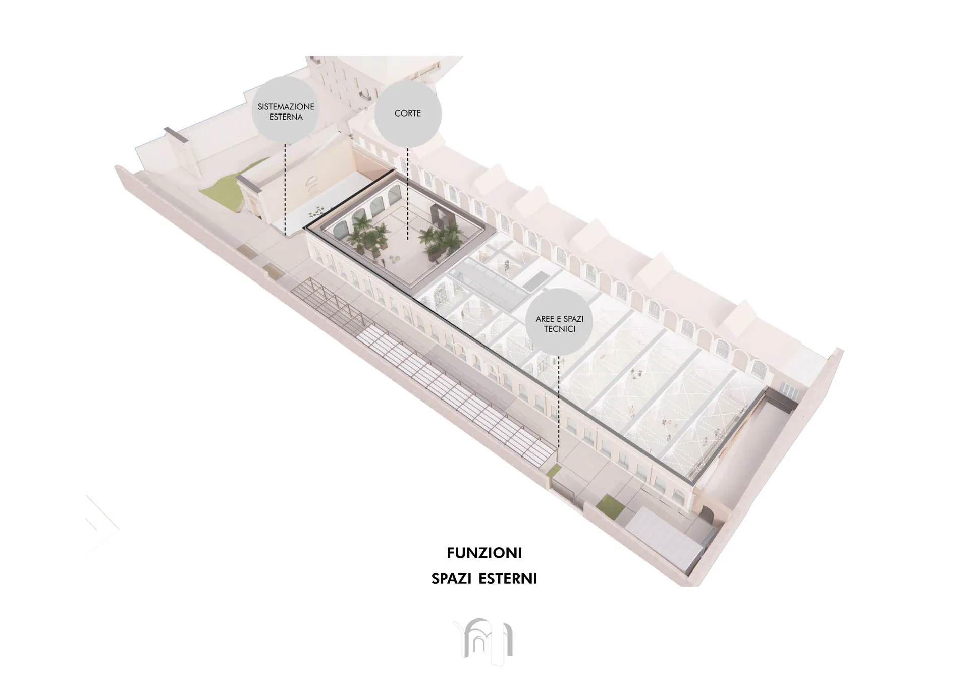 Posti come obiettivi primari la tutela e la valorizzazione delle qualità storiche, artistiche e paesaggistiche del luogo, il progetto stabilisce nuove connessioni architettoniche, spaziali, di uso e durata secondo un lavoro integrato di conservazione e valorizzazione, che contemperi l’istanza storica, tecnica, funzionale attraverso un’unitarietà estetica dell’architettura e del giardino.