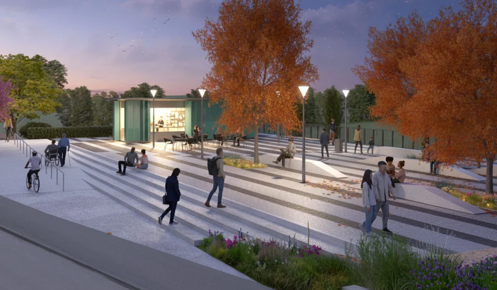 Percorsi accessibili e permeabili collegheranno la piazza ad altri due ambiti: