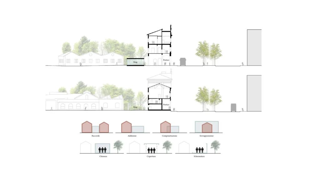 La strategia di valorizzazione degli immobili di archeologia industriale, prevede interventi puntuali sugli edifici esistenti: innesti, piccole estensioni e restauri, per migliorarli, collegarli tra loro e ridare valore alla loro funzione.