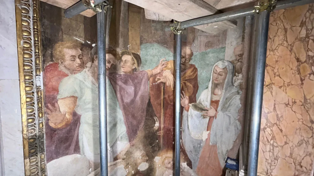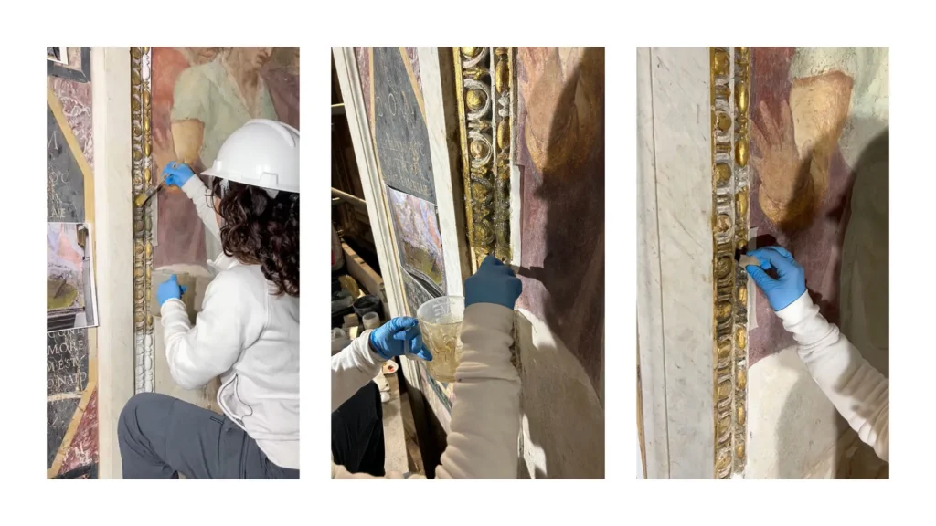 Gli affreschi di Taddeo e Federico Zuccari e del Baglione, si presentavano in un forte stato di degrado, soprattutto nella zona bassa dove è presente un problema di risalita d’acqua per capillarità che lascia tracce inconfondibili.